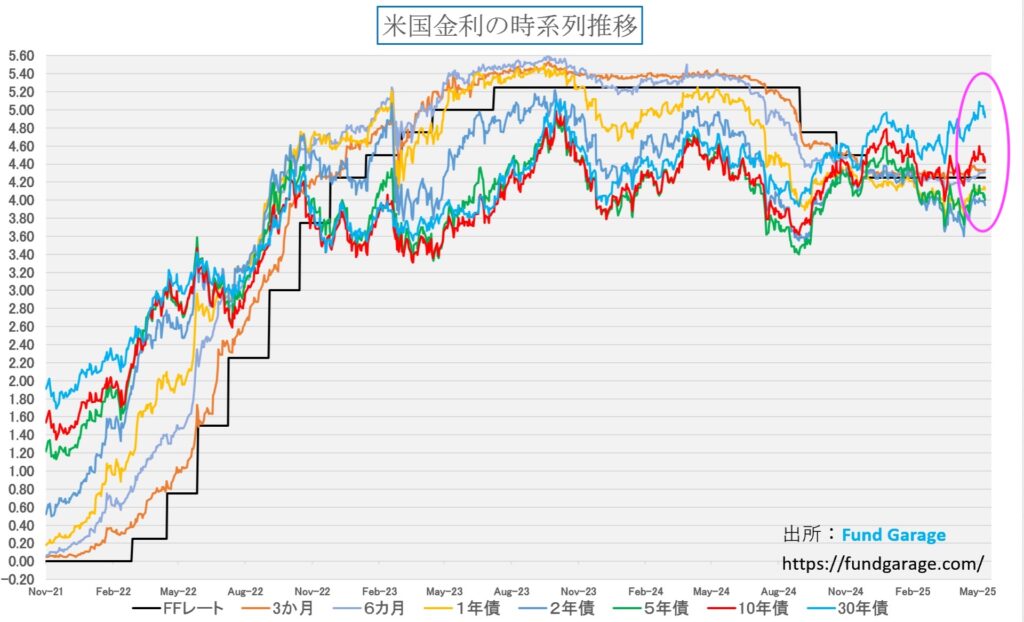 2025年5月の最終週となった先週、市場はさまざまな材料に触れながら、年初から続いていた不安と期待のバランスを再構築する一週間となった。この前の週には、Moody’sによる米国債格付けの引き下げや、米国超長期の20年債入札が不調に終わるという事実もあり、世界中で信用不安や国際経済の先行き不安から超長期債の需要が落ちているとメディアやSNSで騒がれていた。